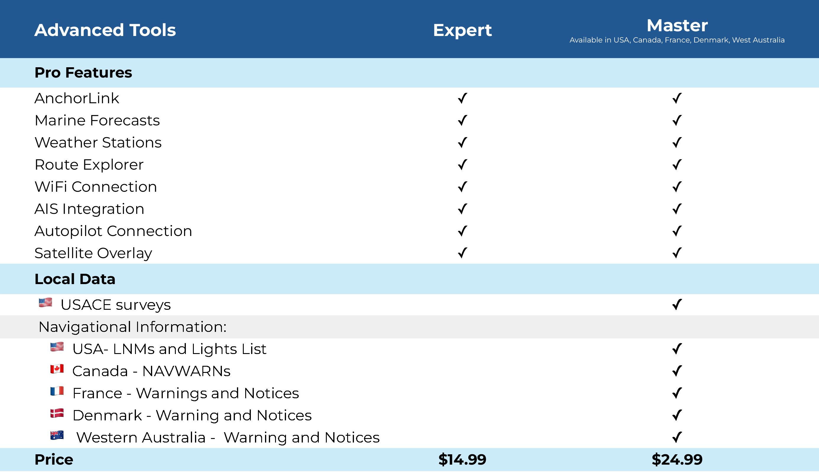 Aqua Map Expert inclut uniquement les fonctionnalités Pro et débloque les outils suivants :